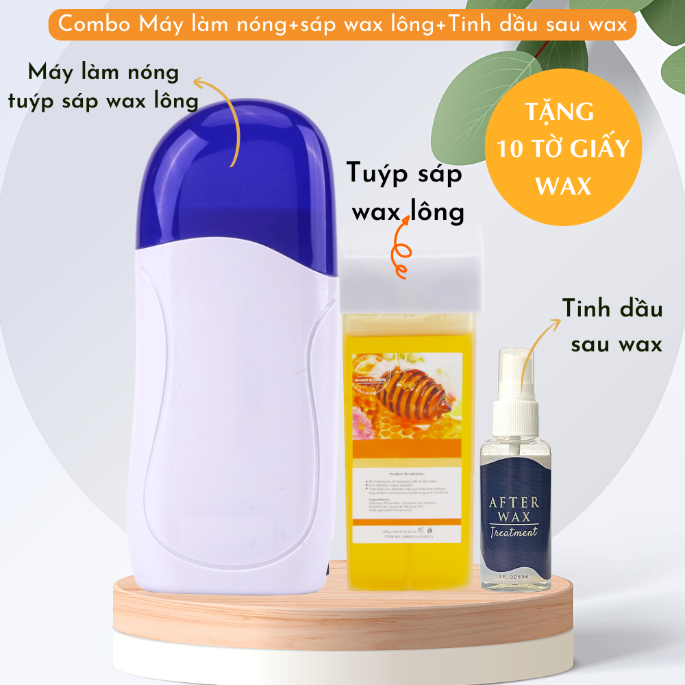 Bộ sản phẩm bao gồm: 1 Máy làm nóng sáp wax. 1 Tuýp sáp wax lông nóng. 1 Chai tinh dầu dưỡng da sau wax 65ml. 10 Tờ giấy wax lông chuyên dụng.